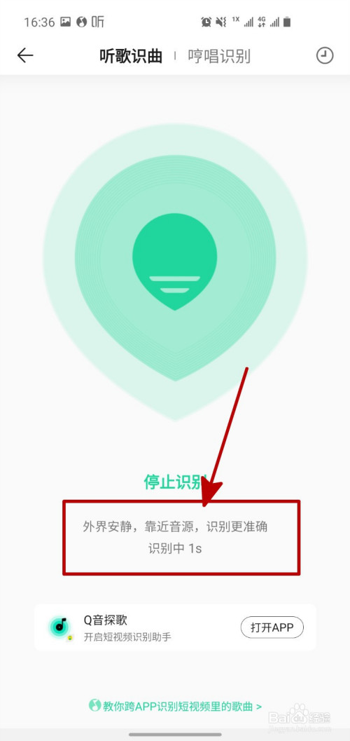 之后QQ音乐就会识别当前情况中的音乐了,我们只需要静静的期待成果即可。
