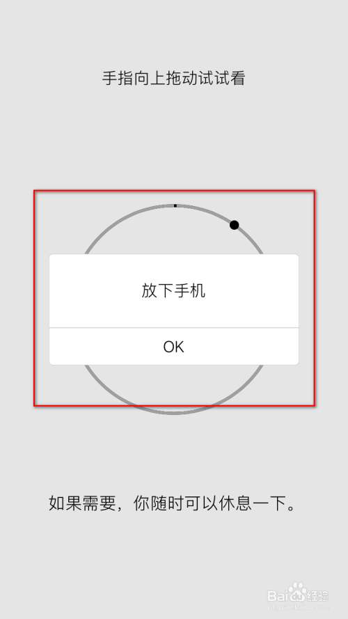 然后,我们应该将手机放下,若是不放下,需要点击下【OK】按钮。