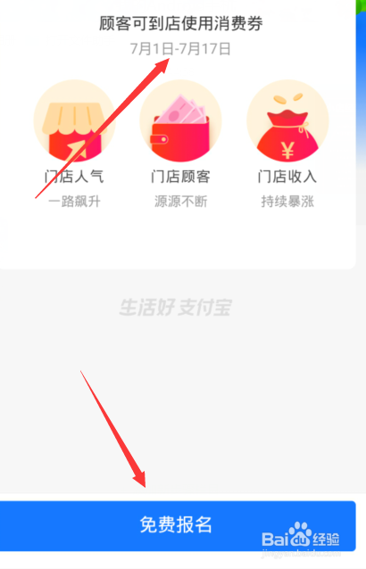 第五:进入消费券报名页面点击下方的【免费报名】按钮。
