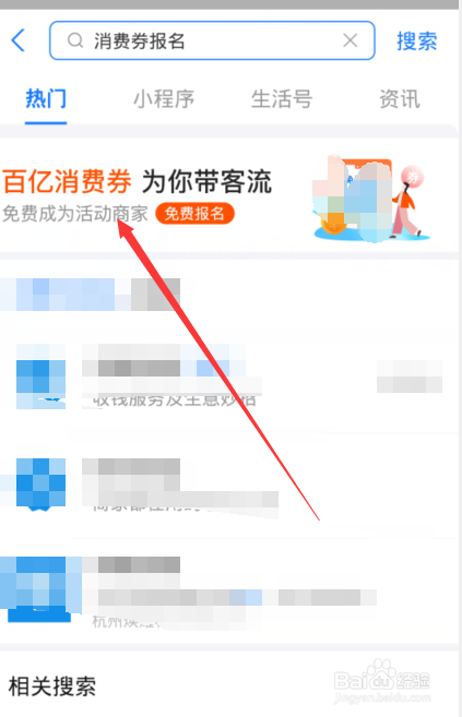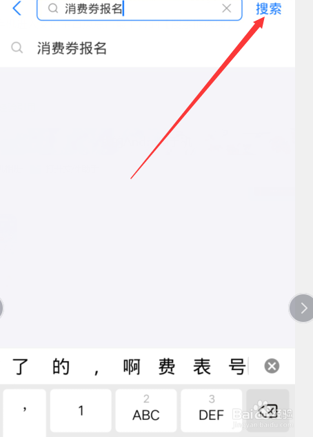第三:在搜索框内输入【消费券报名】关头字点击【搜刮】。