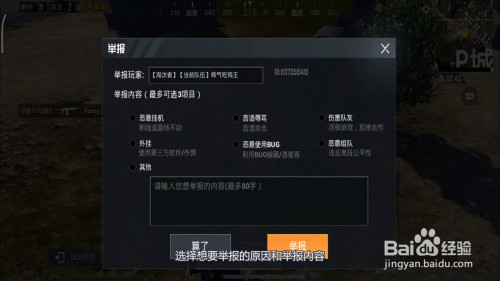 弹出举报界面后,选择想要举报的原因和举报内容。