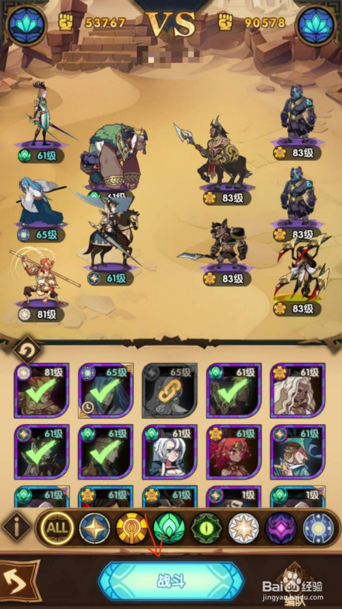 调整好英雄位置后,点击底部的“战斗”