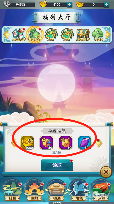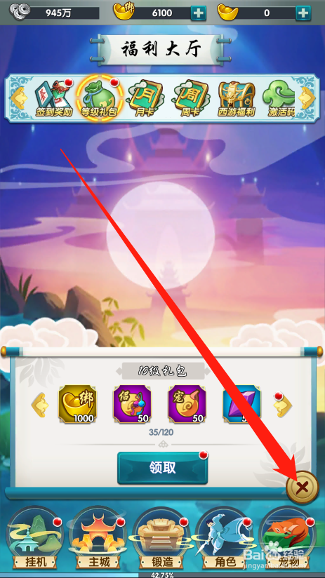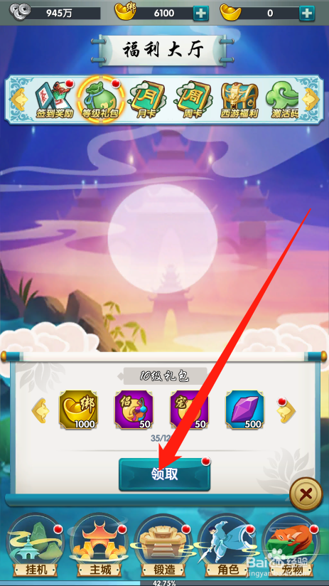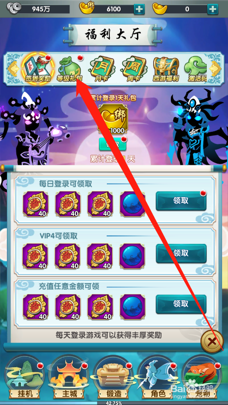 工具/原料星聚方式/步骤1点击进入游戏2点击福利大厅图标,打开福利页面3点击品级礼包按钮,打开活动4可以看到当前可以领取的奖励5点击领取按钮,就可以获得响应的奖励6点击封闭按钮,就可以利用道具更好的进行游戏注重事项但愿对您有所帮忙,感谢