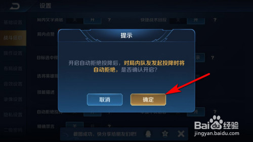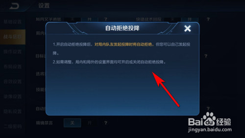 在设置中找到战斗信息设置,找到主动拒绝降服佩服选项。