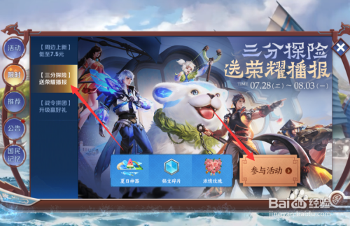 然后在限时里找到三分探险,点击介入活动。