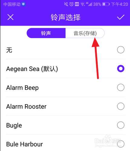 若是您不想用系统供给的铃声,那么您可以选择音乐存储。