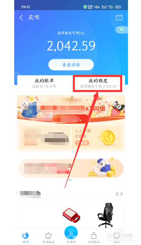 3、点击【我的额度】