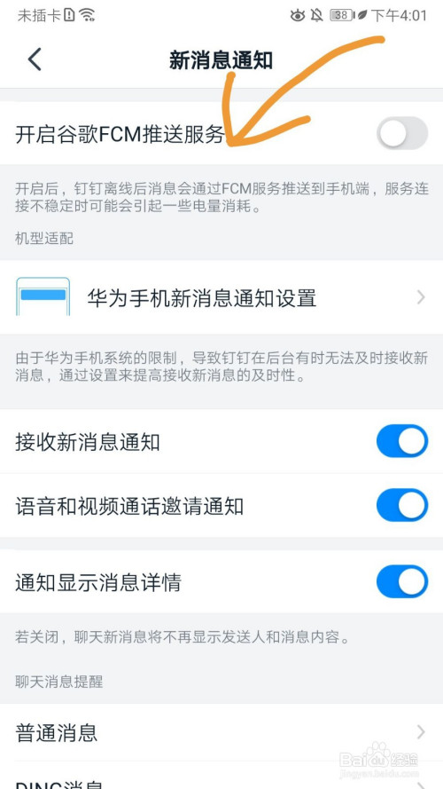 5.选择开启谷歌FCM推送办事