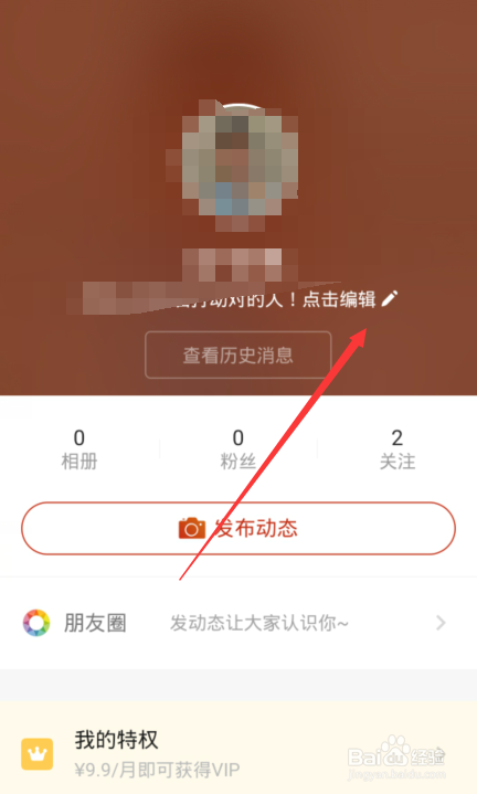 第一:进入探探小我页面点击头像下面的【编纂点窜】选项。