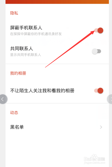 第六:点击开启屏障手机联系人选项【达到隐身结果】完当作。