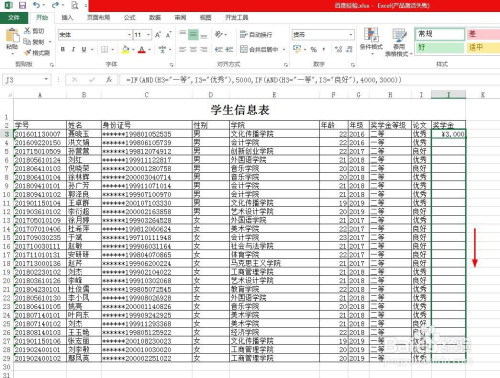 第四步:如下图所示,整列单位格中填充上不异的公式。