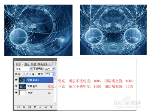 变亮模式 变亮夹杂模式与变暗夹杂模式的成果相反。经由过程比力基色与夹杂色,把比夹杂色暗的像素替代,比夹杂色亮的像素不改变,从而使整个图像发生变亮的结果。