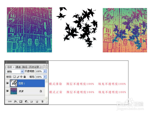 解除模式 解除夹杂模式与差值模式相似,但解除模式具有高对比和低饱和度的特点,比差值模式的结果要柔和,敞亮。白色作为夹杂色时,图像反转基色而呈现;黑色作为夹杂色时,图像不发生转变。