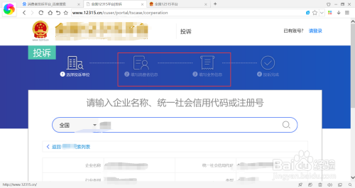 完当作登录后,按照提醒填写消费者信息、营业信息后,点击投诉即可。