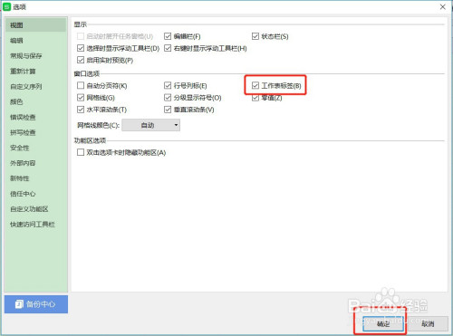 勾选【工作表标签】,点击下面的【确定】