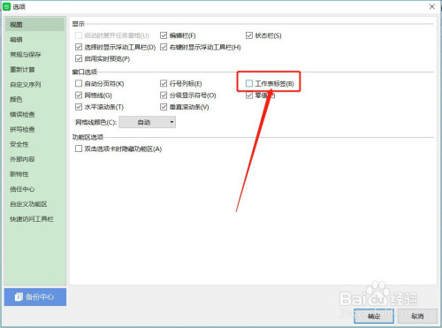 在视图的窗口选项里面,有一个【工作表标签】勾选项,这个勾选项是没有勾选的