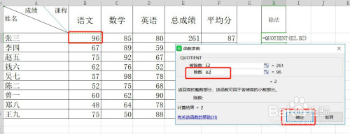 在选择函数列内外面选择:QUOTIENT