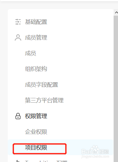 点击左侧菜单栏中的“项目权限”菜单 ,如下图所示