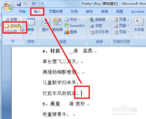 此时从光标处起头分页,像上面一样再次插入一个分页符就呈现空白页了。