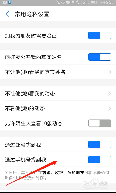 点击“经由过程手机号找到我”把后面的按钮开启酿成蓝色即可。