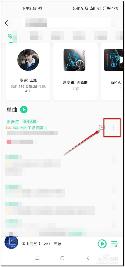 找到想要做当作铃声的歌曲,点击右侧“更多”图标