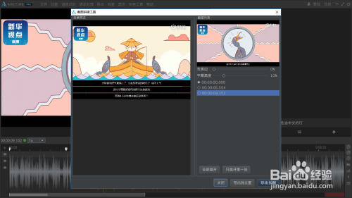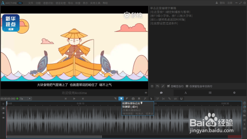导入视频之后,播放视频,调整视频的进度,在需要截图的处所搁浅,点击下图所指部门建立标识表记标帜点,可以有多个标识表记标帜点,对应分歧的字幕。