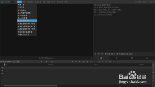 首先我们打开ARCTIME pro软件,先导入视频,可以直接从文件夹拖拽视频到左上角的大片空白区,也可以依次“文件-导入音视频文件”来导入。若是需要替代视频文件,依次点击“文件-替代音视频文件”。