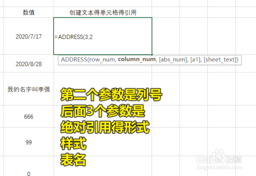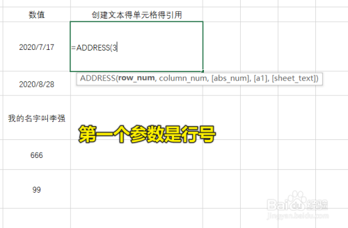 这个时辰就可以输入表达式了,ADDRESS的第一个参数是行号,可以输入单位格的引用,也可以直接输入文本