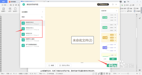 打开菜单中的思维导图按钮下拉框,选择里面的新建空白图,并保留。