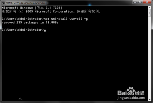 打开号令行东西后,输入【npm uninstall vue-cli -g】按回车
