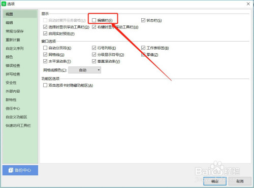 勾选【编纂栏】,点击下面的【确定】