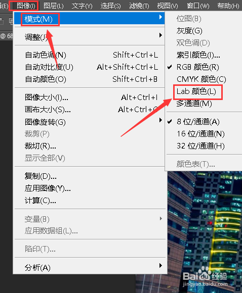 依次点击上方的【图像】-【模式】-【lab颜色】。
