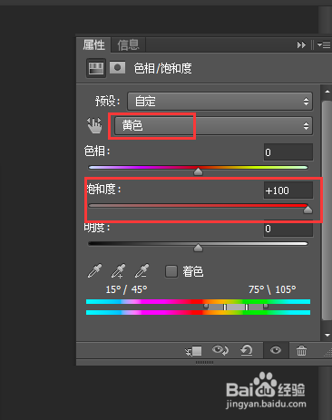 设置为黄色,然后将饱和度调到最高。