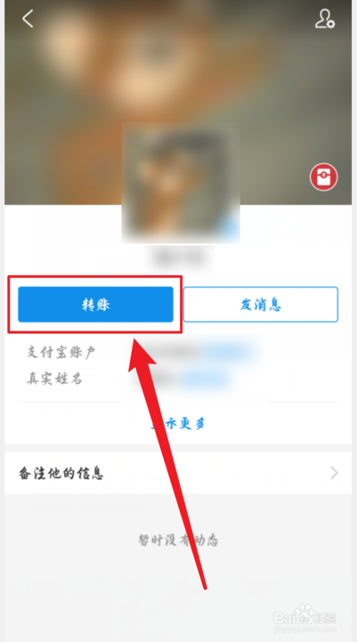 之后找到并点击您要查看记实的老友,在资料卡点击【转账】按钮。