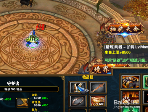 首先我们需要将新手装备进级到max,我们可以看到前面是精辟的属性。