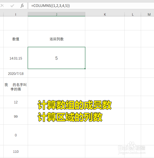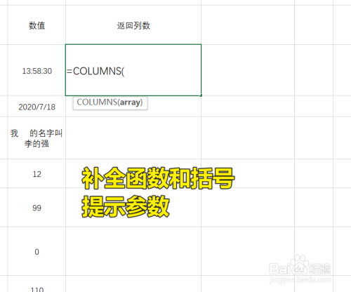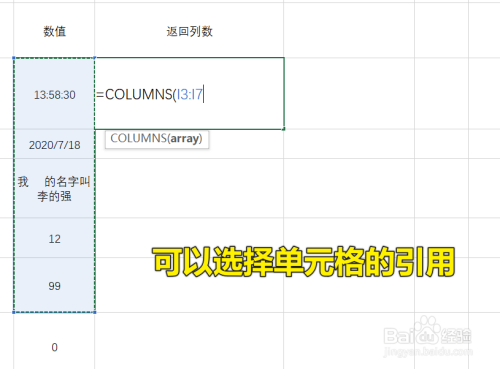 这个时辰就可以输入表达式了,COLUMNS的参数是一个数组或者单位格区域,可以输入单位格的引用