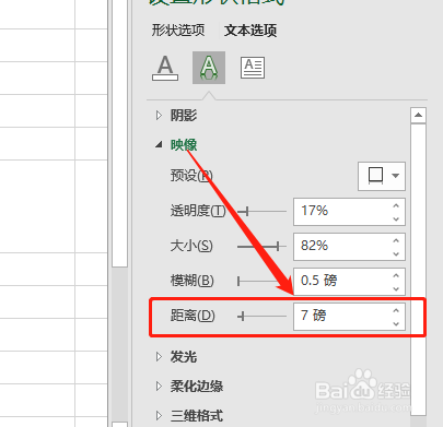 2.点击选择“文本”选项,然后在“结果”映像中,调节“距离”即可。