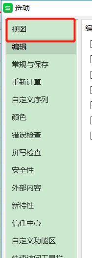 在选项页面,点击左侧的【视图】