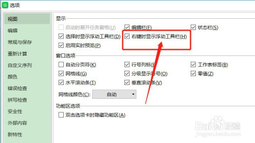 在视图的显示里面,有一个【右键时显示浮动东西栏】的勾选项,勾选项默认是勾选的
