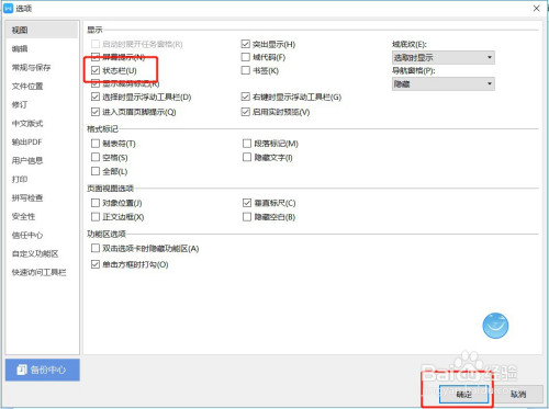 勾选【状况栏】,点击下方的【确定】