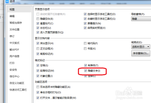 第三步:勾选格局标识表记标帜下面的“埋没文字”。