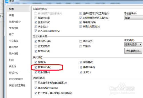 第三步:勾选格局标识表记标帜下的“段落标识表记标帜”。