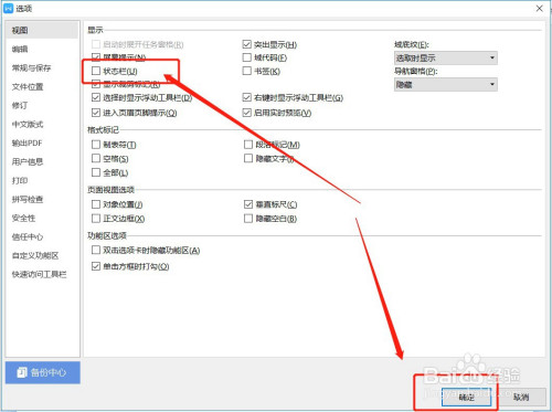 把【状况栏】勾选项的勾选去失落,点击下面的【确定】