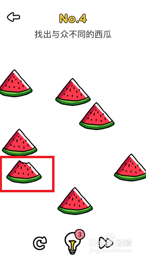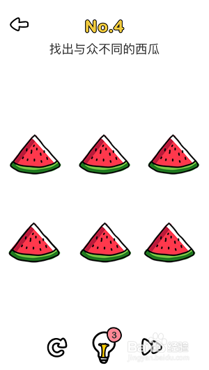 进入第4关,我们发现这六块西瓜仿佛都 一样,没什么分歧。