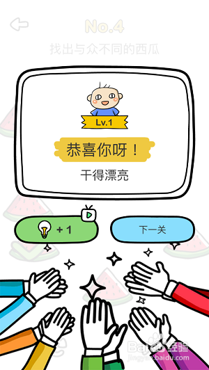 点击那块被咬了一口的西瓜后,就顺遂经由过程第四关啦~~