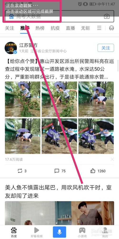 若是滚动截图很长的话,可能会有1-2秒的拼接时候,手机主动拼接完当作后,滚动截图就全数生当作了。