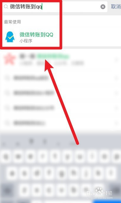 2、然后搜刮进入微信转账到QQ的微信小程序。