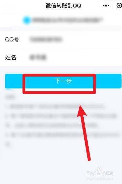 然后点击【下一步】选项,就可以在微信上转账到QQ了。