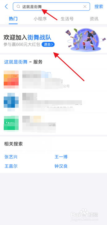 1.进入支付宝后,在首页就有活动的进口,若是没有的话可以直接搜刮【这就是街舞】进入活动。