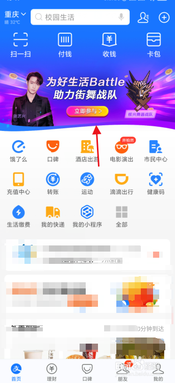 进入支付宝后,在首页就有活动的进口,若是没有的话可以直接搜刮【这就是街舞】进入活动。
